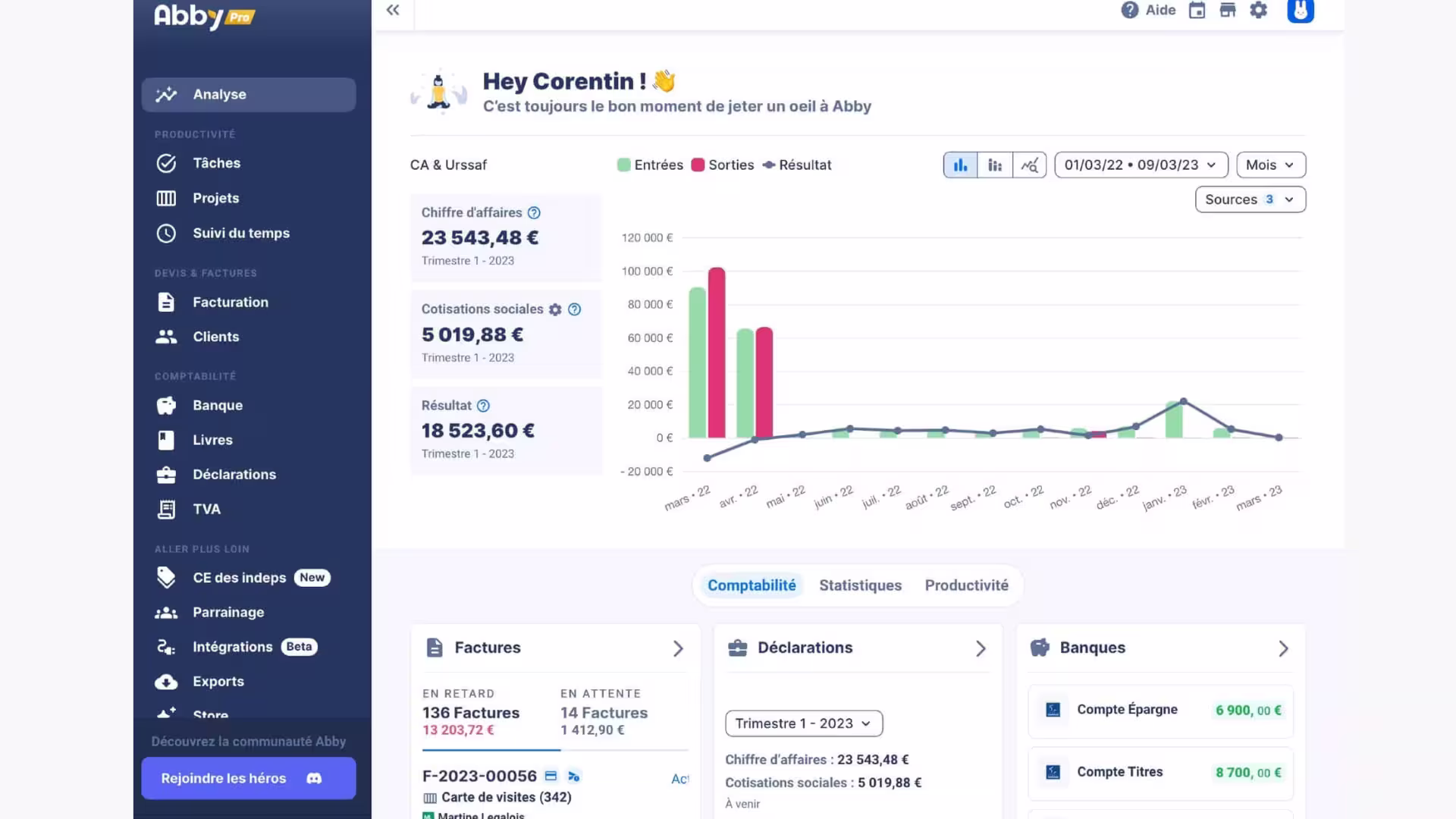 Thanks to its intuitive interface and intelligent automations, Abby enables you to manage your business efficiently, while complying with legal obligations. From creating quotes and invoices to tracking payments, categorizing expenses and automatically generating tax returns, every feature is designed to lighten your mental load and optimize your organization. You keep a clear view of your financial situation in real time, without accounting jargon.
