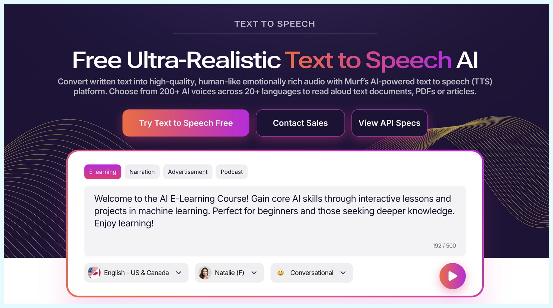 Murf AI es un generador de voz en off basado en inteligencia artificial, diseñado para crear narraciones realistas, multilingües y profesionales en unos pocos clics. Transforma el texto en audio de alta calidad, sin necesidad de un estudio de grabación ni equipos caros.