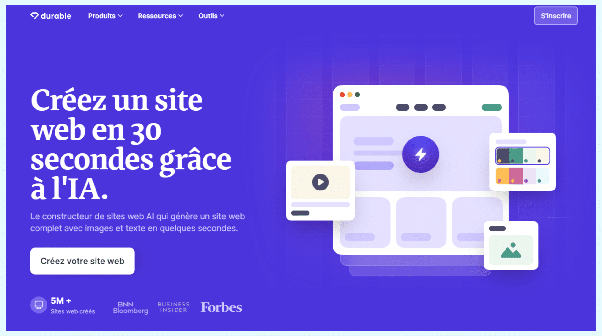 Durable.co est une plateforme de création de sites web basée sur l’intelligence artificielle, conçue pour permettre aux entrepreneurs, aux freelances et aux petites entreprises de créer un site professionnel en quelques secondes seulement. Son objectif est simple : rendre la création de site accessible à tous, sans compétences techniques, sans développeur et sans délai. Il suffit de saisir votre activité pour que Durable génère automatiquement un site complet : contenu textuel, images, mise en page, boutons, sections marketing… tout est prêt immédiatement.