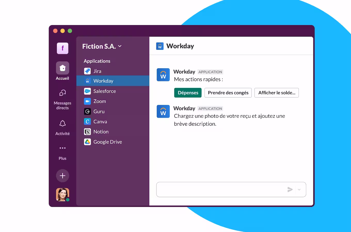 Intégrations avec des outils professionnels : Connectez Slack à vos applications préférées, comme Google Drive, Trello ou Salesforce, pour gérer tous vos workflows depuis une seule plateforme.